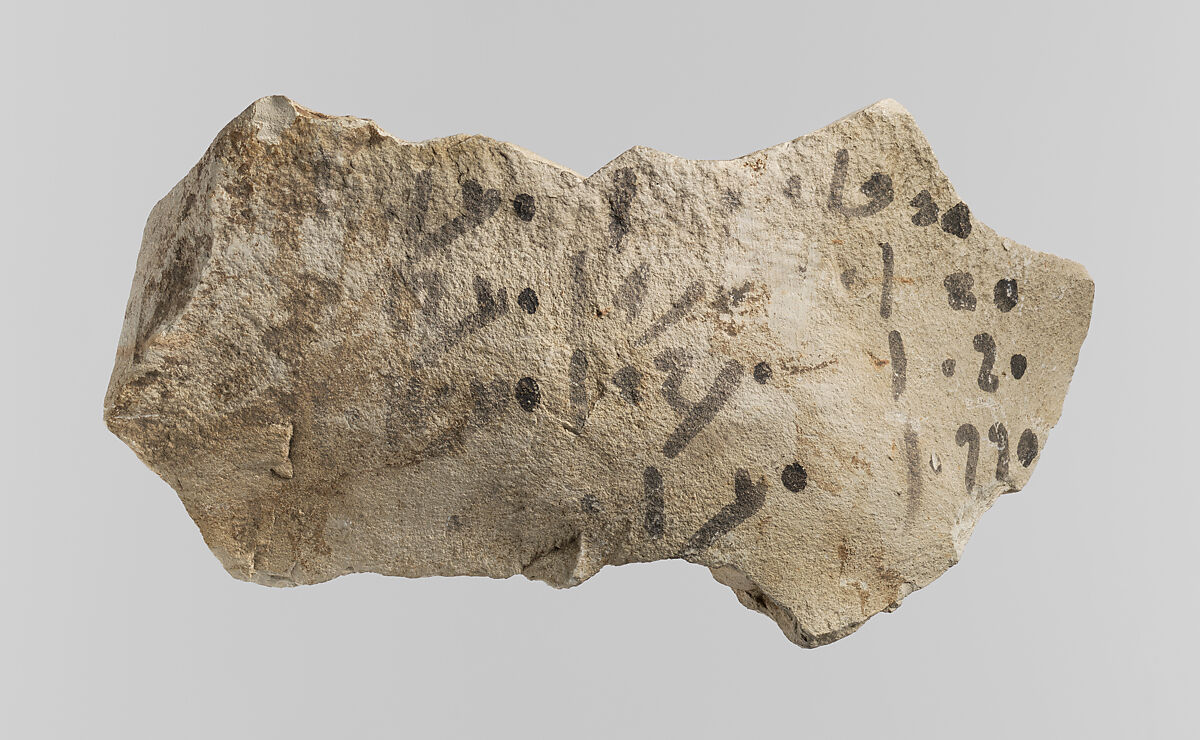 - Title: Hieratic ostracon with three columns of accounts