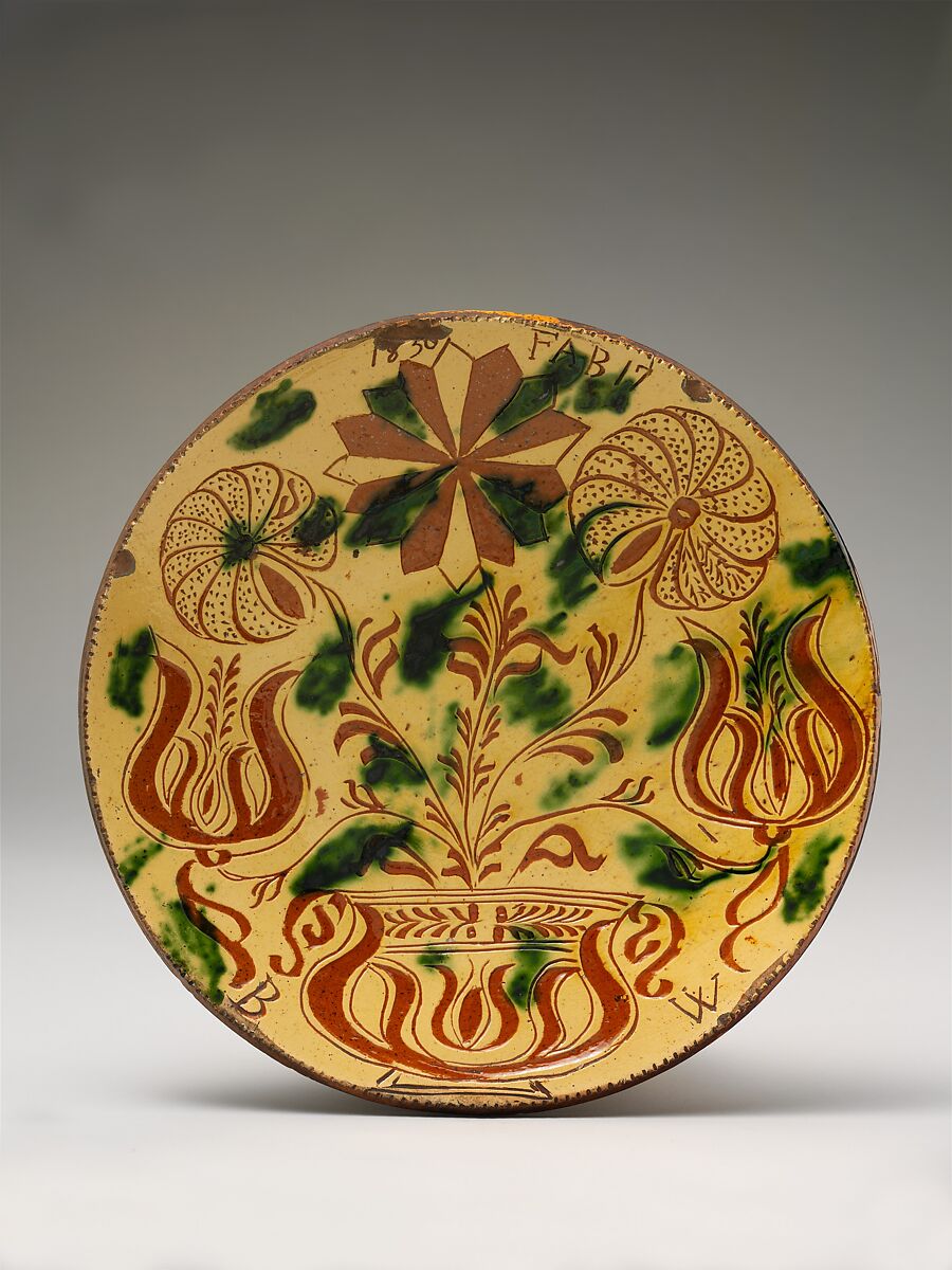 - Medium: Earthenware; Redware with sgraffito decoration