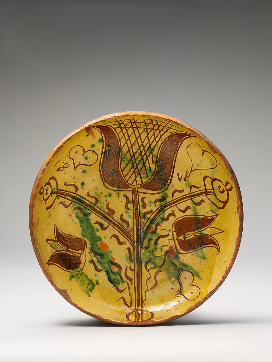 - Medium: Earthenware; Redware with sgraffito decoration