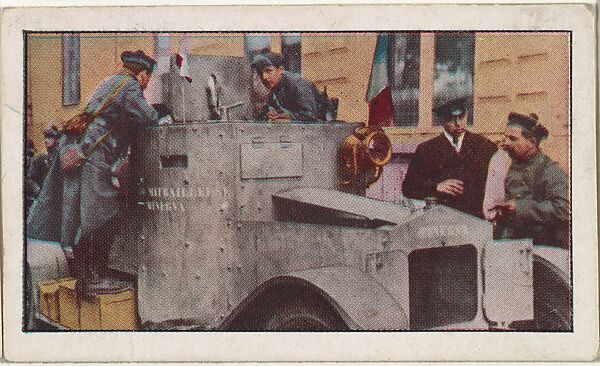 - Title: Card No. 147, French Marines Examining One of the Belgian Armored Motor Cars Which Have Been Taken From Belgium to France, from the World War I Scenes series (T121) issued by Sweet Caporal Cigarettes