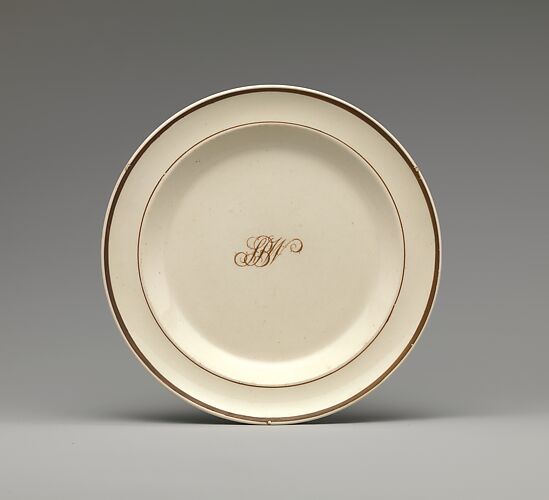 Creamware, so-called for its cream-colored body, is a refined earthenware with a lead-based glaze that was developed in Staffordshire, England around 1750. Due to its light color and glossy glaze, it was ideal for dinnerware. Economically affordable to produce, creamware was imported to America in large quantities. Although much creamware was used in America, it is rare to find pieces associated with a particular family. This dinner service (36.22.1 -.38) bears the initials “SBW” for Samuel Blachley Webb. The set was imported from England in 1774 by Webb, who was an aide-de-camp and military secretary to General George Washington.