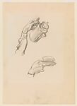 This sketch is one of dozens of drawings that Benton used to compose his mural America Today, also in the Museum’s collection (2012.478a–j). It relates to the narrow overdoor panel, which shows hands reaching for coffee and bread.