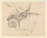 This sketch is one of dozens of drawings that Benton used to compose his mural America Today, also in the Museum’s collection (2012.478a–j). The artist carefully studied the mechanics of the disc harrow that appears in the lower left corner of the Deep South mural panel. A predecessor to the modern tractor, this plow was used to prepare the soil for planting seeds. In the mural, Benton shows the farmer holding a rein, indicating that the harrow was pulled by a horse or a mule—not by a modern tractor.
