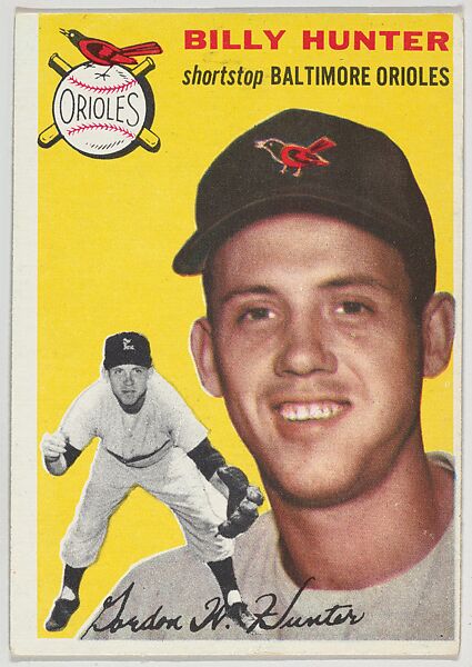 - Title: Card Number 48, Billy Hunter, Shortstop, Baltimore Orioles, from "1954 Topps Regular Issue" series (R414-8), issued by Topps Chewing Gum Company.