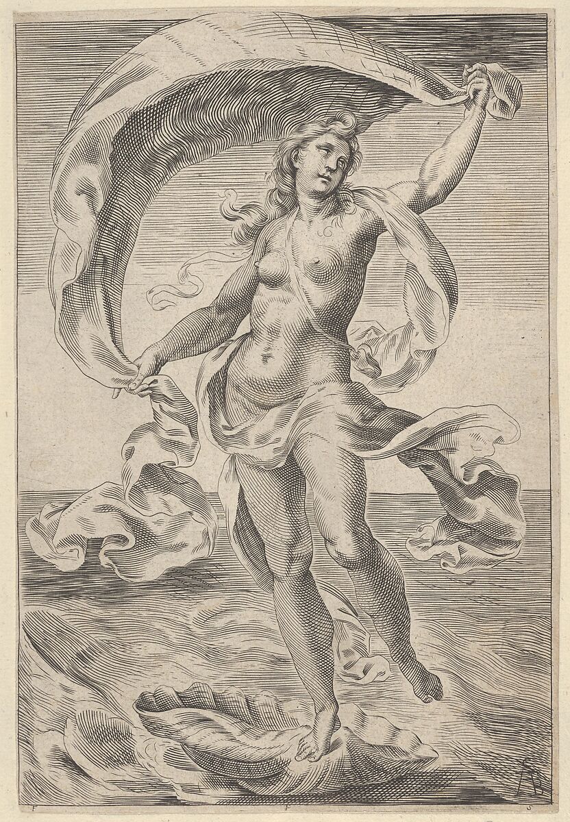 - Title: Venus on a half-shell, holding fabric over her head