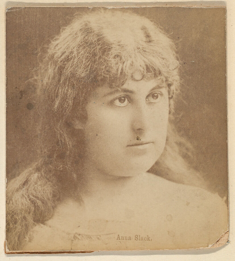 - Title: Anna Slack, from the Actresses series (N246), Type 2, issued by Kinney Brothers to promote Sporting Extra Cigarettes
