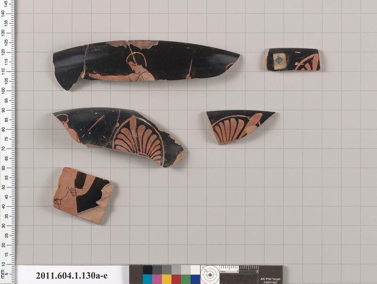 - Title: Terracotta fragments of a kylix (drinking cup)