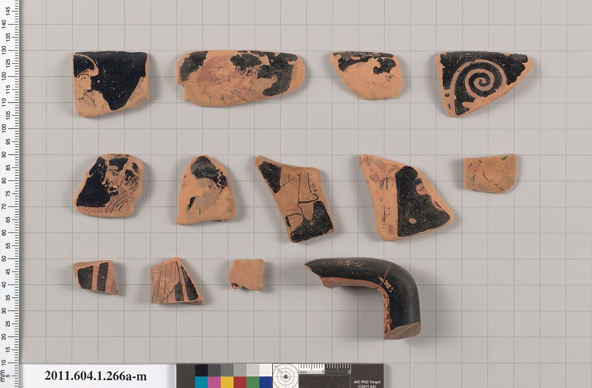 - Title: Terracotta fragments of a kylix (drinking cup)