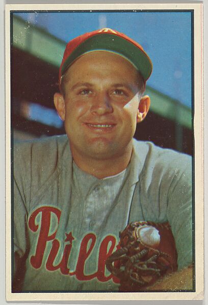 Number 28 in series. Baseball trade card from the "Colors" set, series 7 (R406-7), issued in 1953 by Bowman Gum.