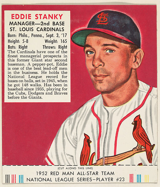 - Title: Eddie Stanky, from the Red Man All-Star Team series (T232), issued by Red Man Chewing Tobacco