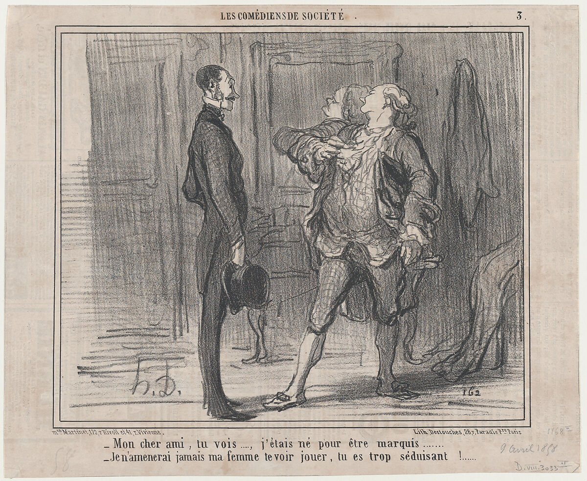 - Title: Mon cheri ami, tu vois..., j'étais né pour être marquis..., from Les Comédiens de Société, published in Le Charivari, April 9, 1858