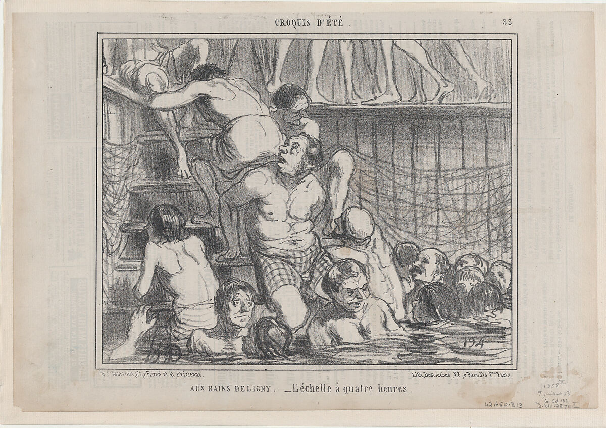 - Title: Aux Bains Deligny, from Croquis Été, published in Le Charivari, July 9, 1858