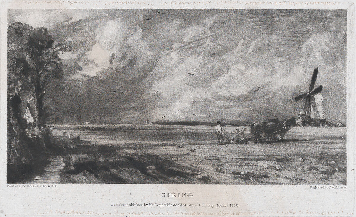 In 1827, Constable began work on the project that would occupy his attention until his death seven years later: the publication of a series of prints based on his paintings that would stand as a summary of his achievements. The painter collaborated closely with the engraver David Lucas to create prints that would illustrate Constable's didactic intention—to illustrate the "chiaroscuro of nature." The medium of mezzotint, in which the design is developed from dark to light using a wide range of velvety tones, was eminently suited to the project.