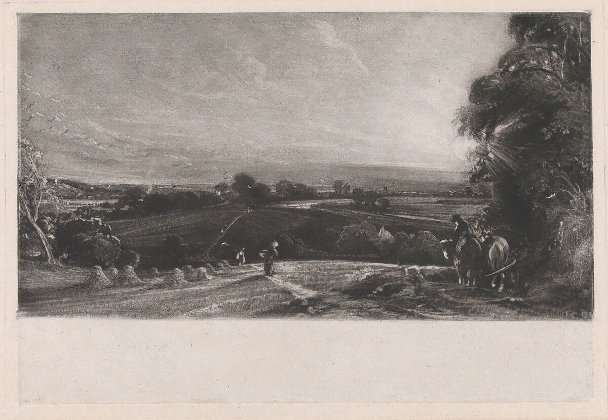 In 1827, Constable began work on the project that would occupy his attention until his death seven years later: the publication of a series of prints based on his paintings that would stand as a summary of his achievements. The painter collaborated closely with the engraver David Lucas to create prints that would illustrate Constable's didactic intention—to illustrate the "chiaroscuro of nature." The medium of mezzotint, in which the design is developed from dark to light using a wide range of velvety tones, was eminently suited to the project.