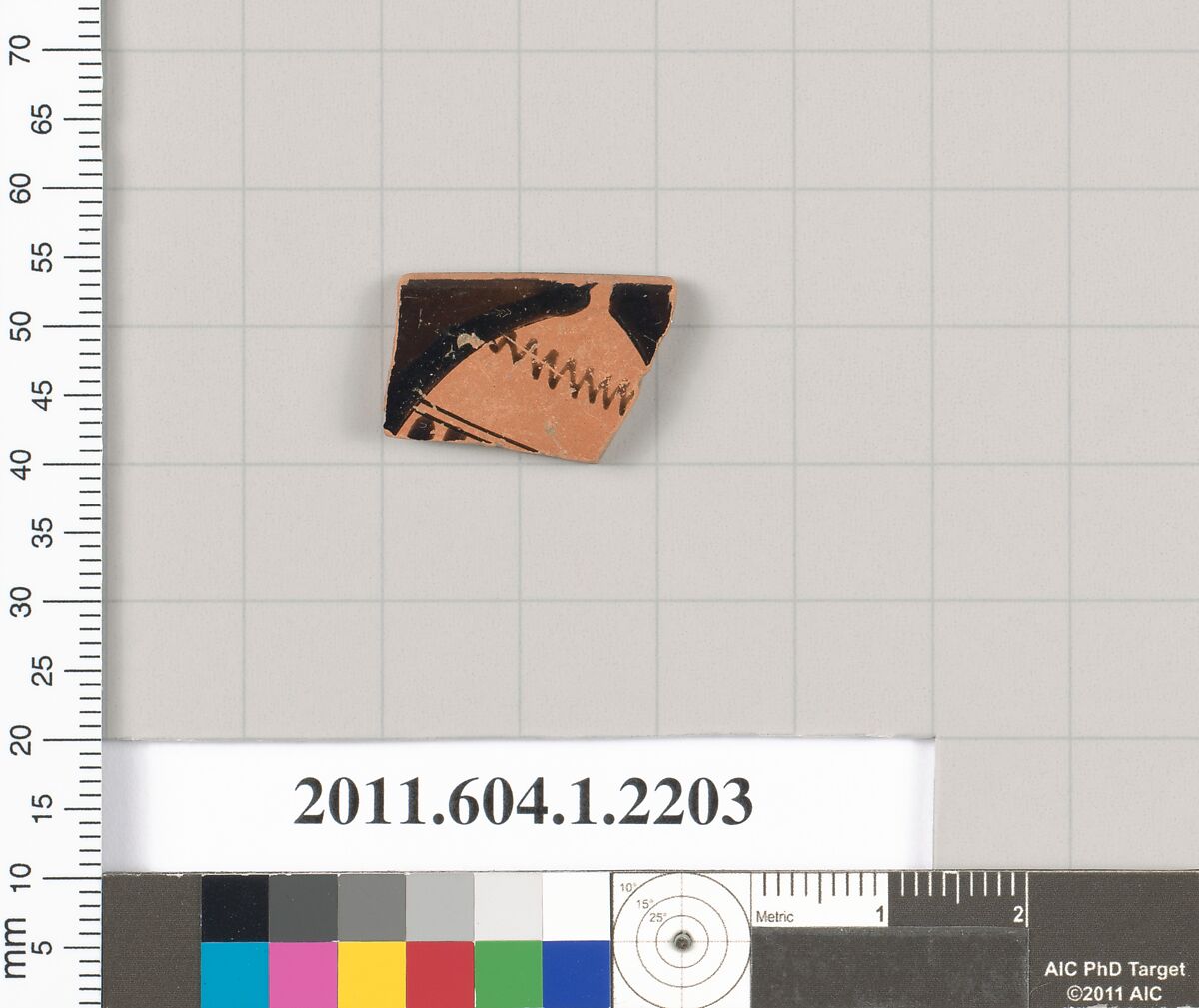 - Title: Terracotta rim fragment of a kylix (drinking cup)