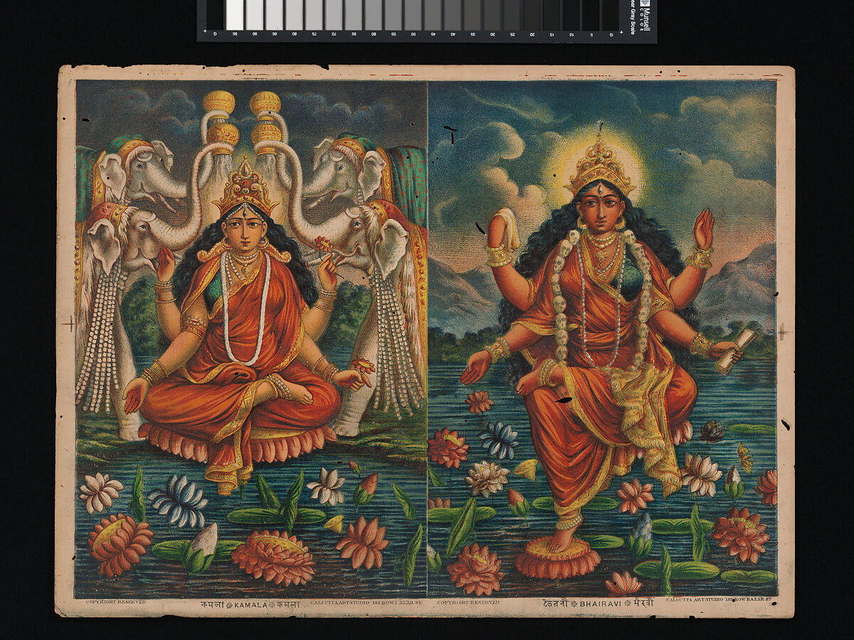 Kamala and Bhairavi are two of the ten Mahavidyas or great manifestations of Devi (deified aspects of the goddess that range from pacific to ferocious).