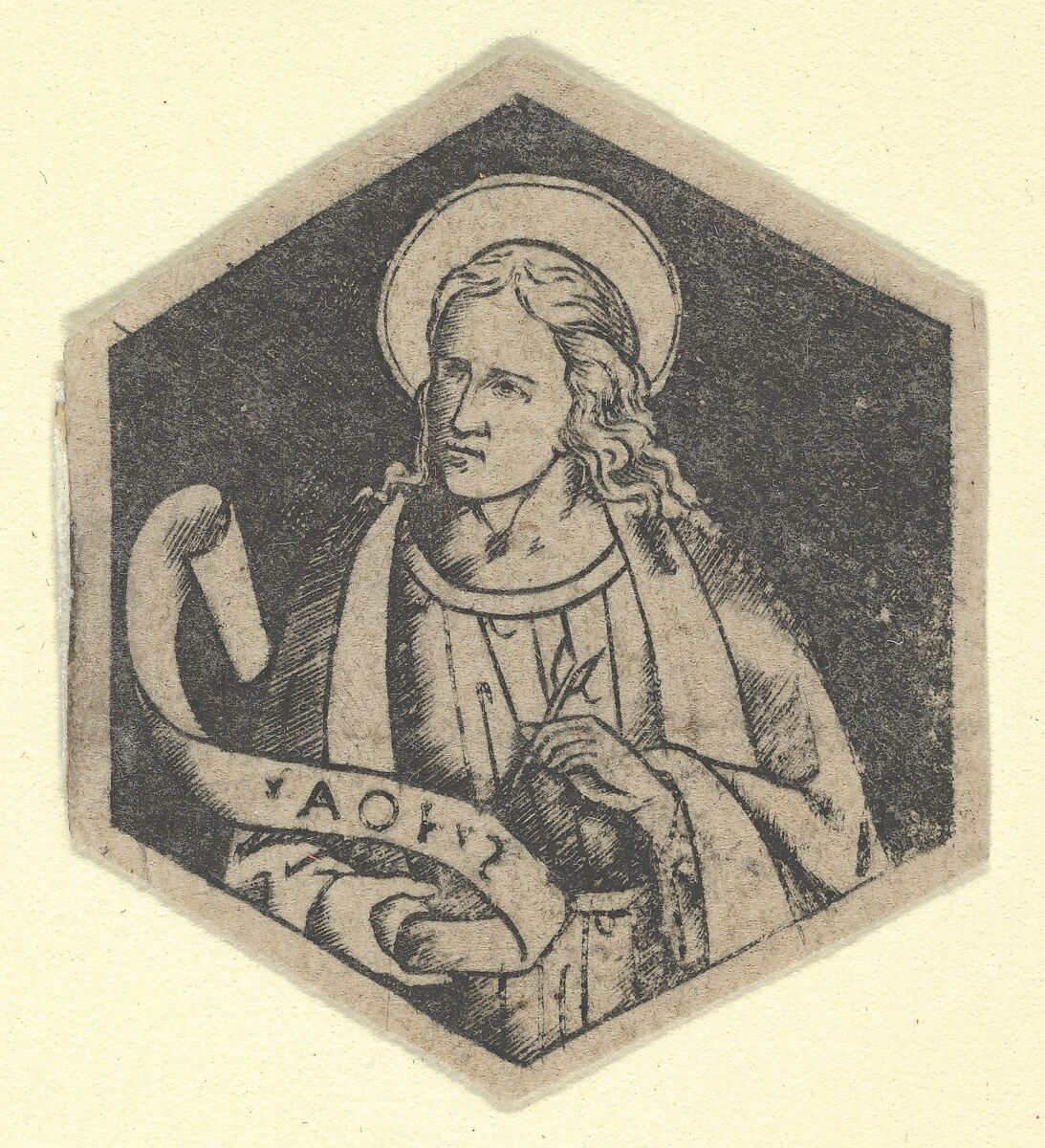 St John the Evangelist, holding a banderole (possibly a modern impression)