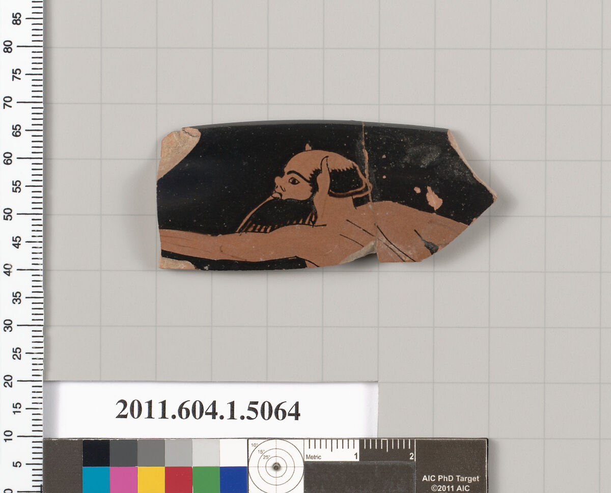 - Title: Terracotta rim fragment of a kylix (drinking cup)