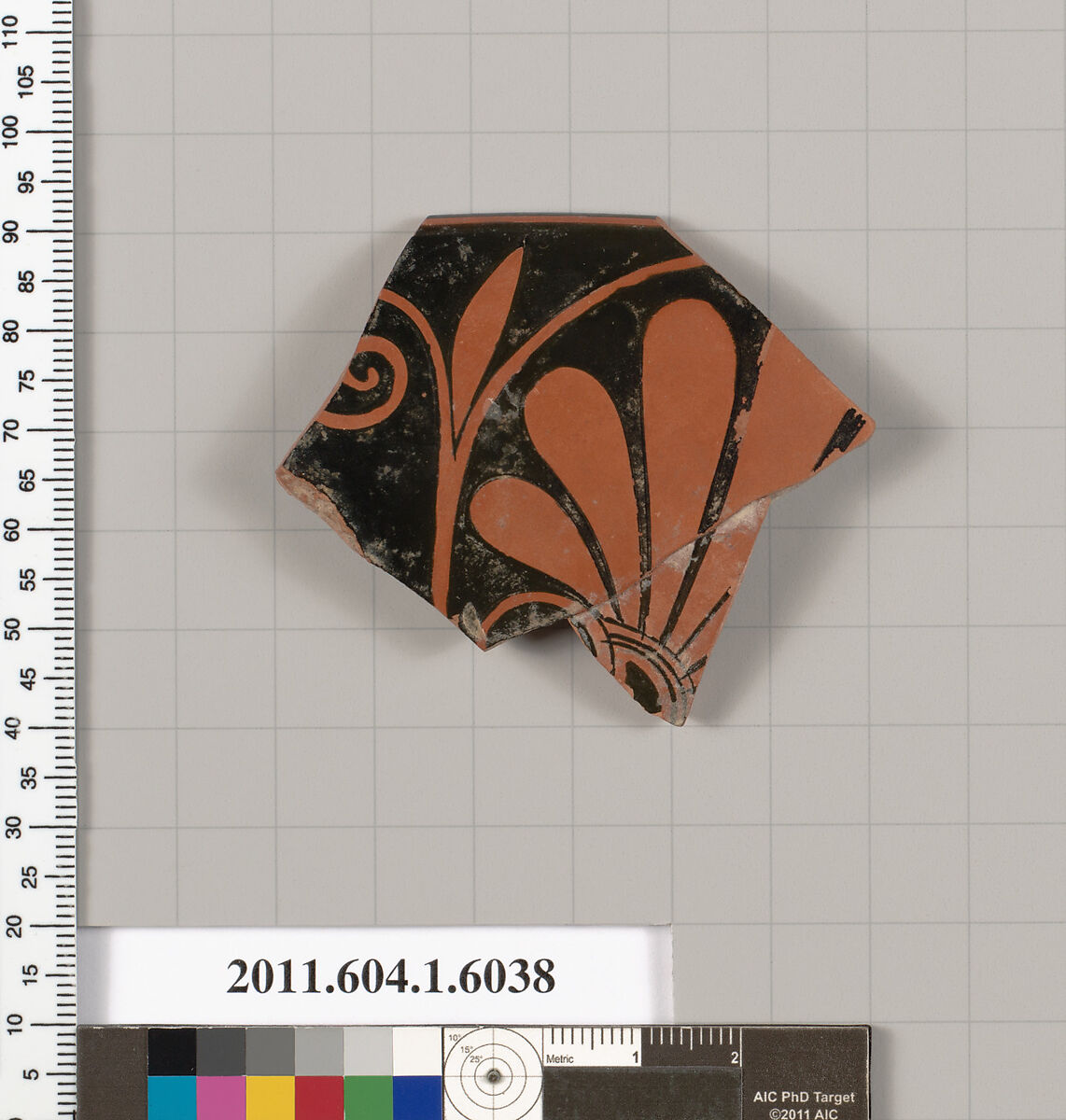 - Title: Terracotta rim fragment of a kylix (drinking cup)