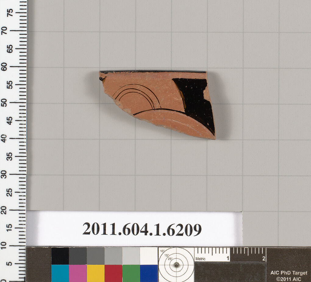 - Title: Terracotta rim fragment of a kylix (drinking cup)
