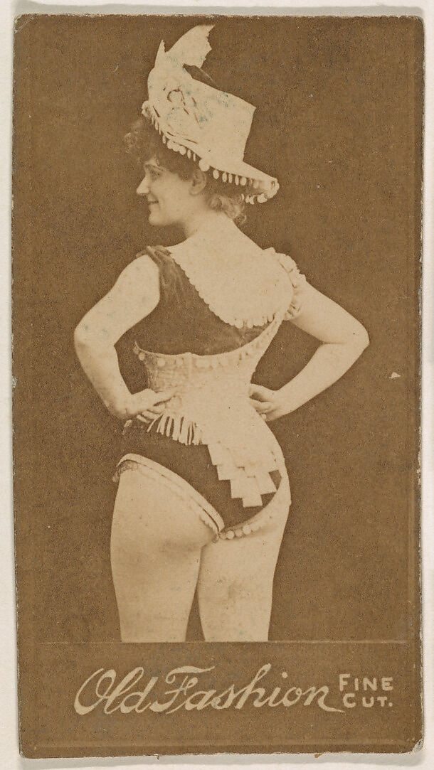 - Title: Actress wearing fringed top hat, from the Actresses series (N664) promoting Old Fashion Fine Cut Tobacco