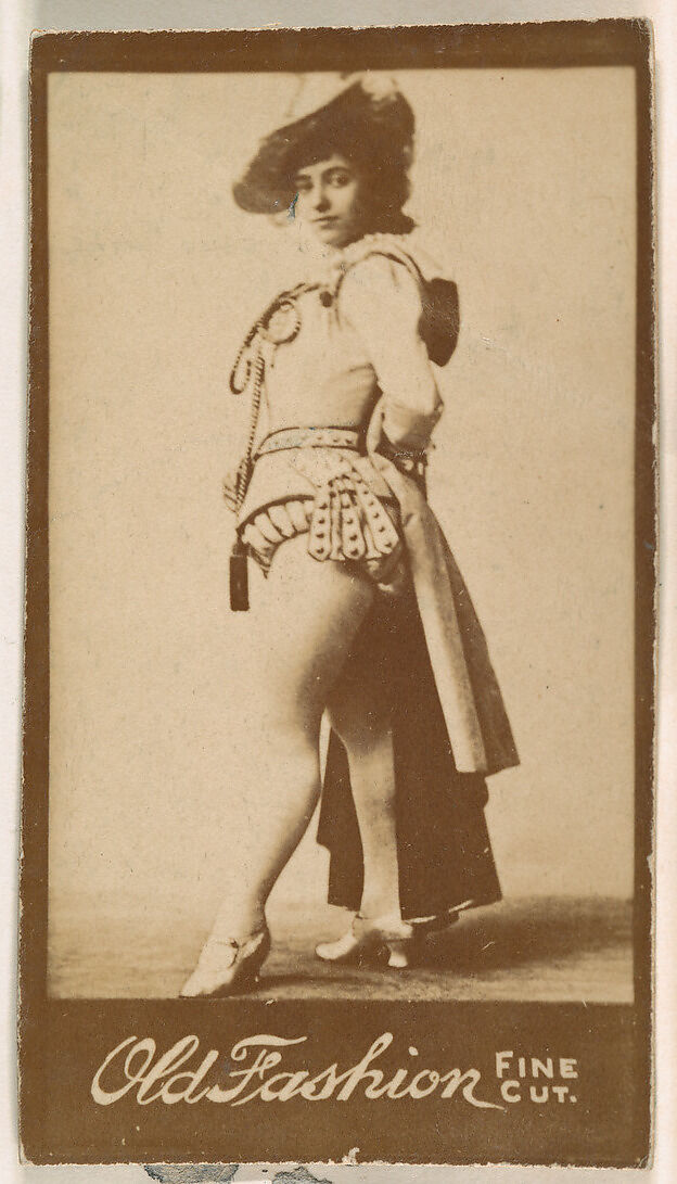 - Title: Actress standing with hands behind waist, from the Actresses series (N664) promoting Old Fashion Fine Cut Tobacco