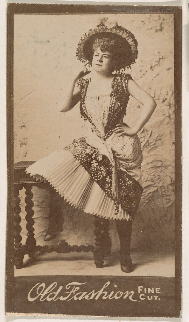- Title: Actress standing with hand on hip, from the Actresses series (N664) promoting Old Fashion Fine Cut Tobacco