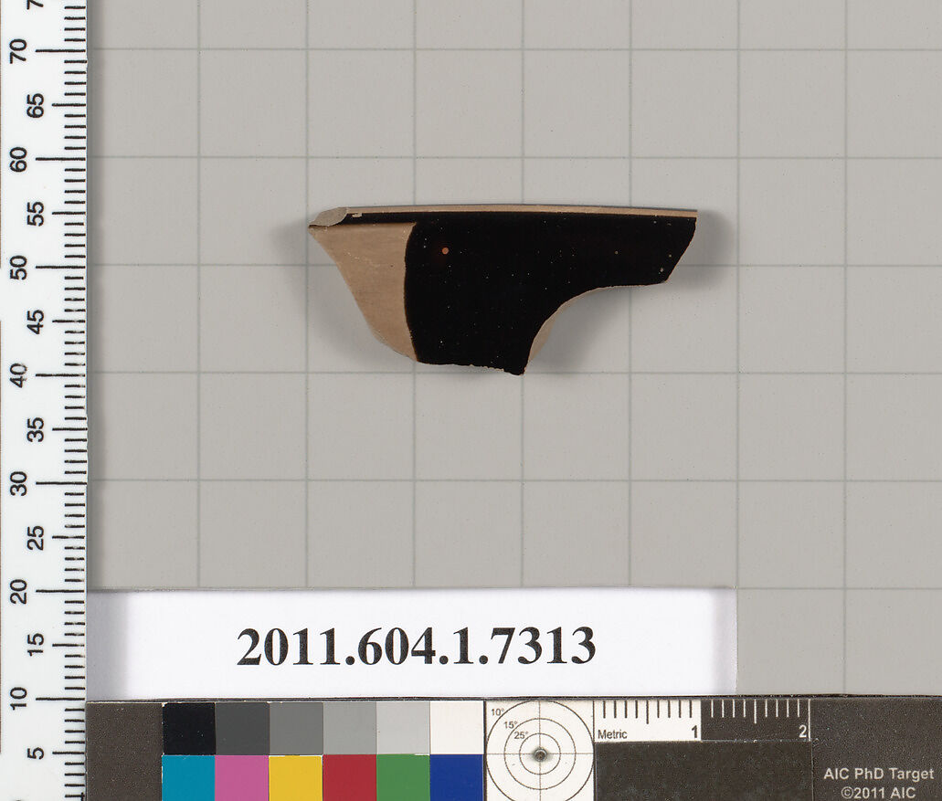• Title: Terracotta rim fragment of a kylix (drinking cup)