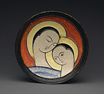 The Finnish-born Maija Grotell was one of the most influential potters working in the vessel tradition during the 1930s and 1940s. Even though a relatively large number of women had played important roles in the Art Pottery movement of the early twentieth Century, few female ceramists were active between the wars. Grotell was one of the exceptions. After first studying in her native Finland, in 1927 Grotell immigrated to the United States to study under master potter and influential teacher, Charles Fergus Binns at the New York State Clayworking School at Alfred University. Like so many other potters, Grotell soon began teaching to sustain her ceramics career. This plaque was executed while Grotell was teaching ceramics at the Henry Street Settlement House in New York City. Grotell’s interpretation of the Mother and Christ child reveal the influence of Matisse and the School of Paris. She had begun work in this style while still in her native Finland, and then emphasized it when she came to New York.