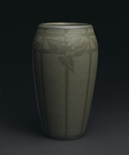 The Marblehead Pottery started out as part of a therapeutic program at a clinic for women suffering from nervous disorders, founded by Dr. Herbert J. Hall in 1905. Patients were to benefit from the practice of handwork in different media, but it was the pottery that was the longest lasting enterprise. Hall hired the young Arthur E. Baggs, a student of Charles F. Binns at the New York State School of Clay-Working and Ceramics at Alfred, to lead the ceramics operations in the coastal town. The therapeutic workshop for convalescing patients soon gave way to an independent pottery operated by Baggs. The predominant palette of the pottery tended toward grayed hues of green blue, and brown in soft, matte glazes in accord with the general tendencies of the Arts and Crafts style. The decorative motifs were often associated with images native to New England, and the designs adhered to the tenets of conventionalization then in vogue, with differing degrees of abstraction.