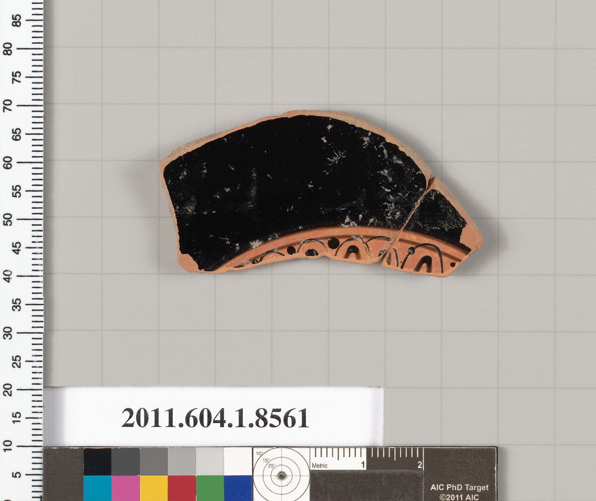 - Title: Terracotta fragment of a stemless kylix (drinking cup)