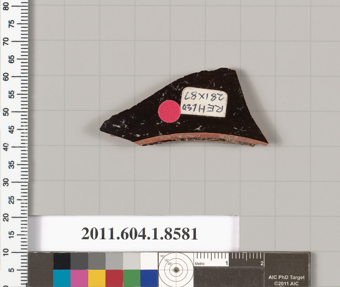 - Title: Terracotta fragment of a stemless kylix (drinking cup)