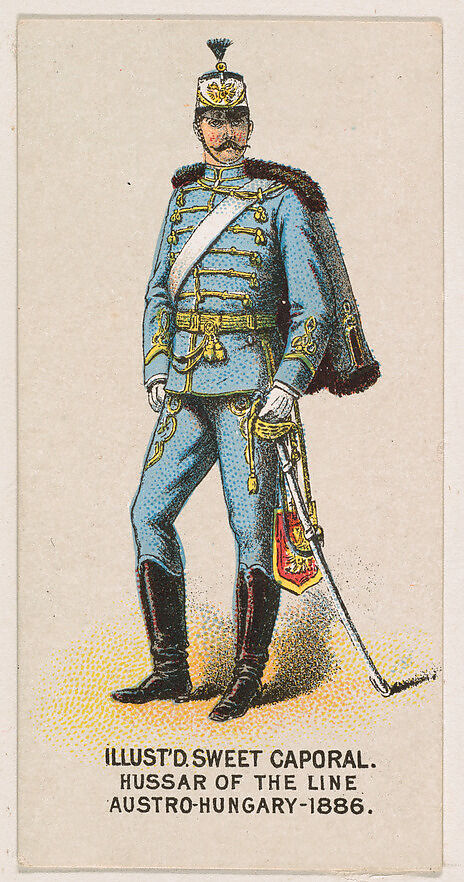 - Title: Hussar of the Line, Austro-Hungary, 1886, from the Military Series (N224) issued by Kinney Tobacco Company to promote Sweet Caporal Cigarettes