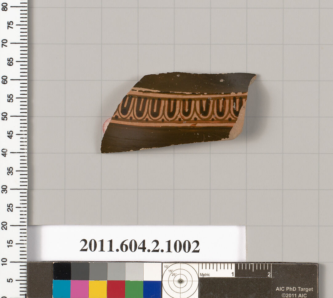 Bit of the neck from an oinochoe; below, at the juncture of the neck and shoulder, an egg pattern with dots in the interstices