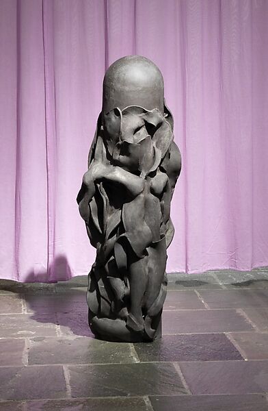 While Mukherjee is primarily known for her fiber sculptures, she started working with ceramics in the mid-1990s and produced a group of large scale ceramic works after a residency at the European Ceramic Work Centre in 's-Hertogenbosch, the Netherlands, from which Leaf Totem II hails. The ceramics affirm nature as Mukherjee’s prime source of inspiration. Leaf Totem II is an unglazed black work, in which a central shaft is covered in a profusion of petal florets, subtly cloaking an upright phallic-like form. The central base emphasizes itself and resembles a lingam—a cylinder with a rounded top that is a common abstract symbol of Shiva. An unabashedly erotic work, it is consistent with Mukherjee’s other suggestive forms in which an inventive iconography communicates irrepressible growth.