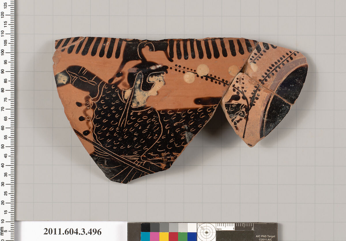 - Title: Terracotta fragment of a column-krater (bowl for mixing wine and water)