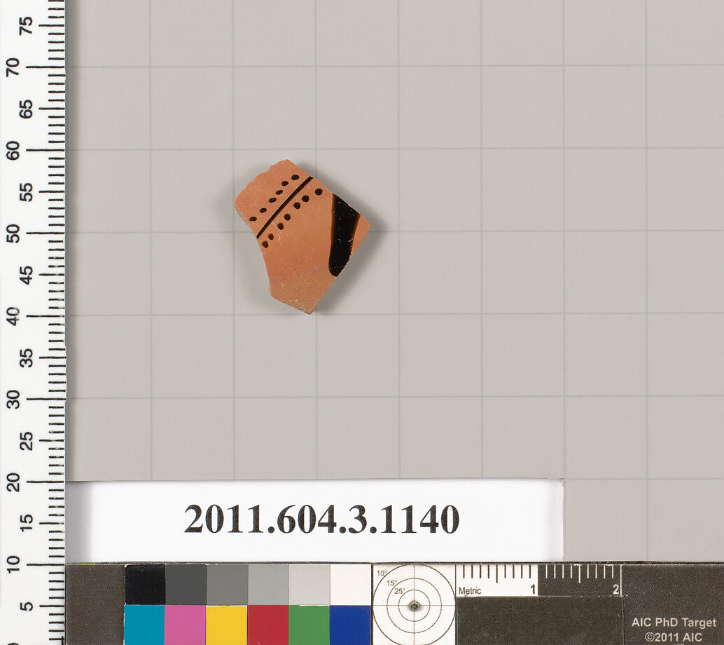 • Title: Terracotta fragment of a mastoid (drinking cup with narrow base) or a kyathos (cup-shaped ladle)