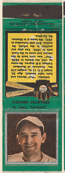 - Title: Clifford Crawford, St. Louis Cardinals, from the Baseball Players Match Cover design series (U1) issued by Diamond Match Company