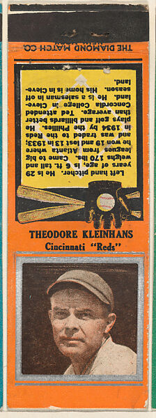 - Title: Theodore Kleinhans, Cincinnati Reds, from the Baseball Players Match Cover design series (U1) issued by Diamond Match Company