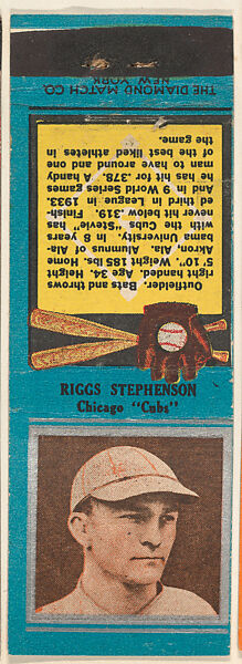 - Title: Riggs Stephenson, Chicago Cubs, from the Baseball Players Match Cover design series (U1) issued by Diamond Match Company
