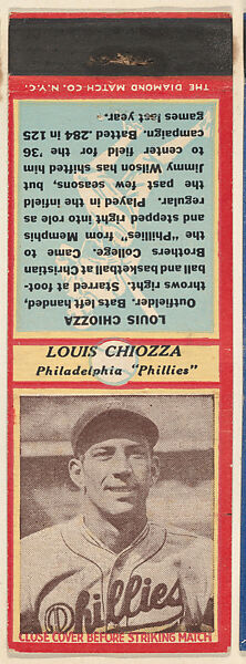 • Title: Louis Chiozza, Philadelphia Phillies, from the Baseball Players Match Cover design series (U3) issued by Diamond Match Company