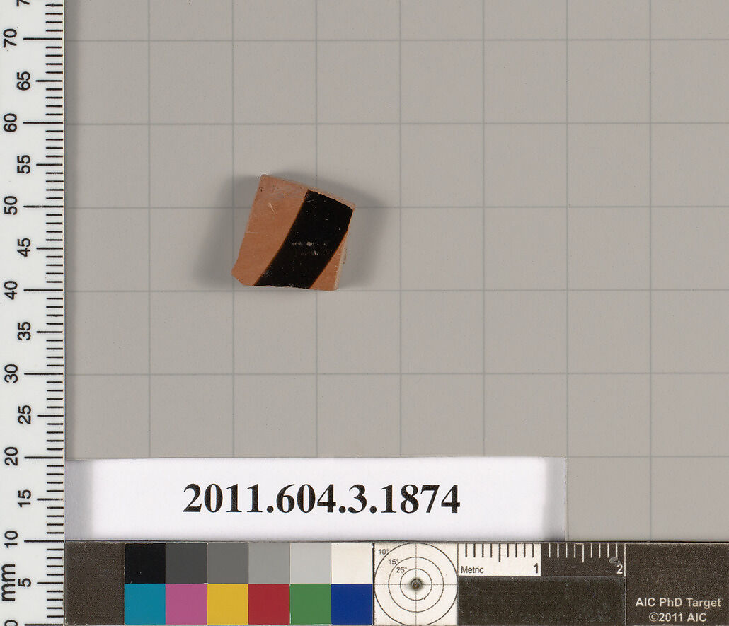 - Title: Terracotta fragment of a kylix: Band or lip cup (drinking cup)