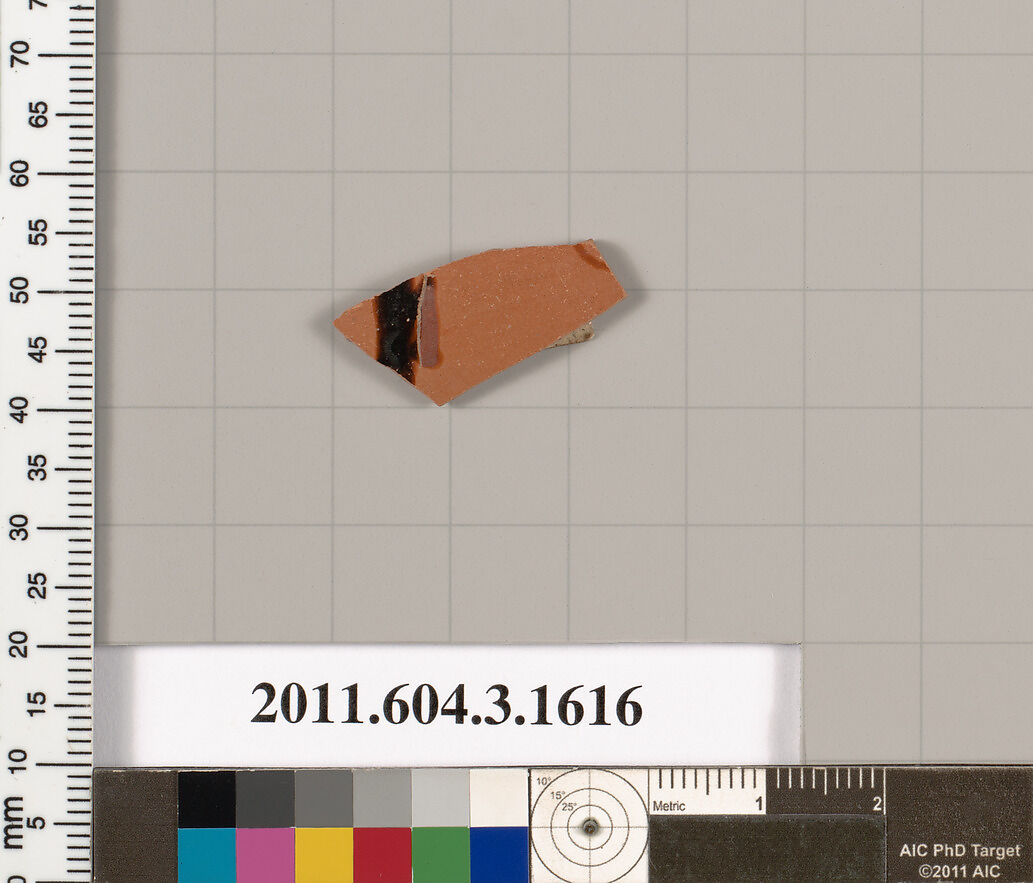 - Title: Terracotta fragment of a kylix: Band cup (drinking cup)