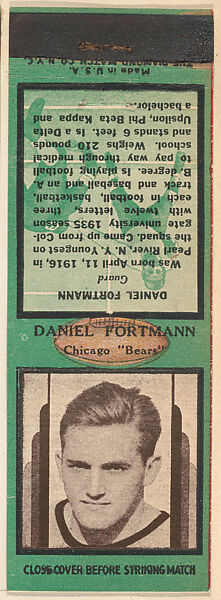 - Title: Daniel Fortmann, Chicago Bears, from the Football Players Match Cover design series (U7) issued by Diamond Match Company