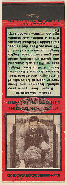 - Title: James (Big Jim) MacMurdo, Philadelphia Eagles, from the Football Players Match Cover design series (U7) issued by Diamond Match Company