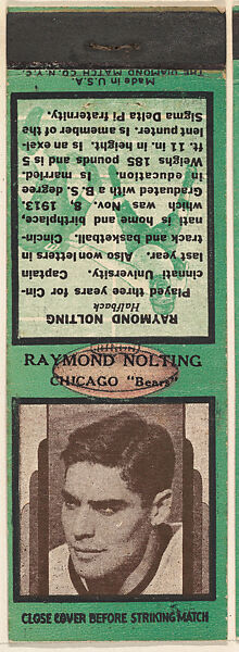 - Title: Raymond Nolting, Chicago Bears, from the Football Players Match Cover design series (U7) issued by Diamond Match Company