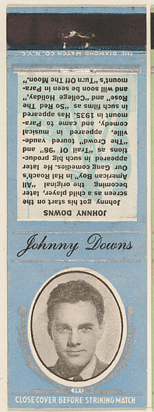 - Title: Johnny Downs from Movie Stars Match Cover design series (U21) issued by Diamond Match Company