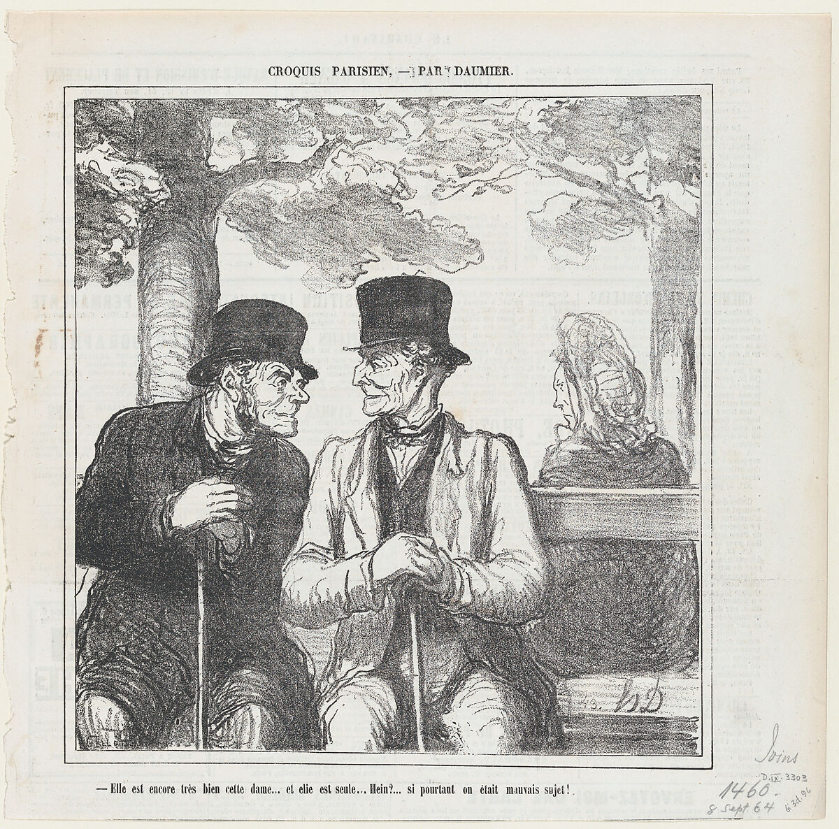 - Title: Not bad, not bad at all the lady over there.... I wonder if she is alone... What rakes we are!, from 'Parisian sketches,' published in Le Charivari, September 8, 1864