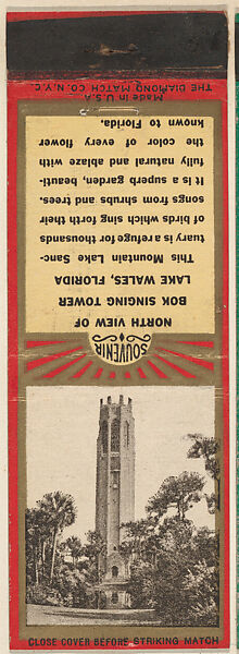 - Title: North View of Bok Singing Tower, Lake Wales from Florida, Souvenir Views Match Cover series (U40.5)