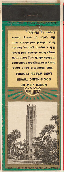 - Title: North View of Bok Singing Tower, Lake Wales from Florida, Souvenir Views Match Cover series (U40.5)